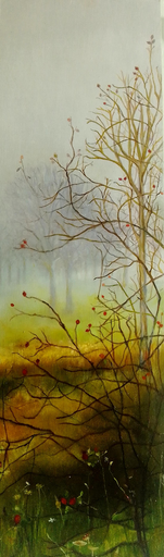 Bomen, riet, takjes en schimmels, bladeren en struiken tussen plantjes en mos; alles roept vaak dromerige sprookjesvoorstellingen bij mij op.Grote boomwortels met de diepere ruimtes daartussen, herbergen voor mij al gauw een bezielde wereld. Zo is schilderen van natuur voor mij een thuiskomen in beelden geworden.
